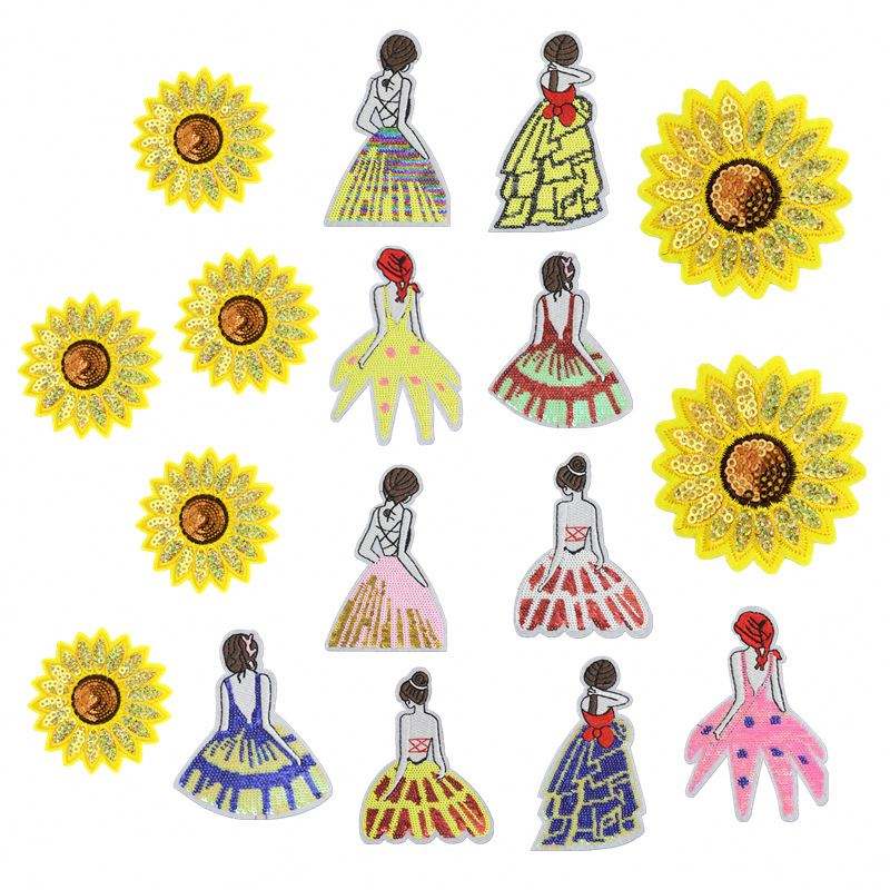 Custom Sequin Embroidery Beautiful Shadow Dancing Girl Princess Sunflower Patches for Girls Clothing