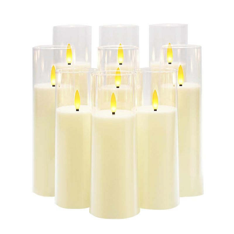 Ensemble personnalisé de 5 ou 9 bougies LED électriques à piles en acrylique et plastique, avec télécommande, pour la décoration de la maison
