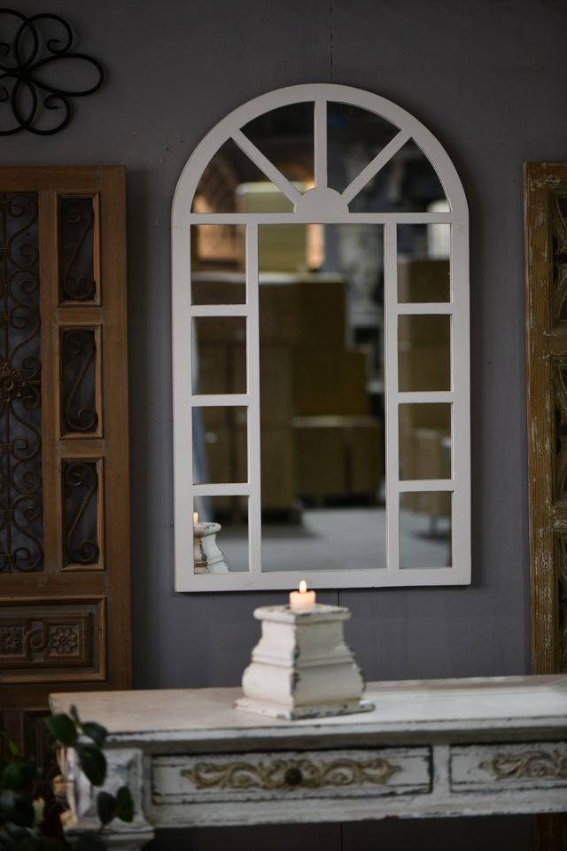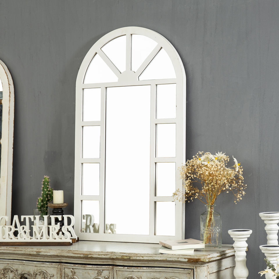 Personnalisé Shabby Chic Blanc Bois Grand Pleine Longueur Long Corps Dressing Espejo Miroirs Arche Rustique En Bois Mur Miroir Sur Pied