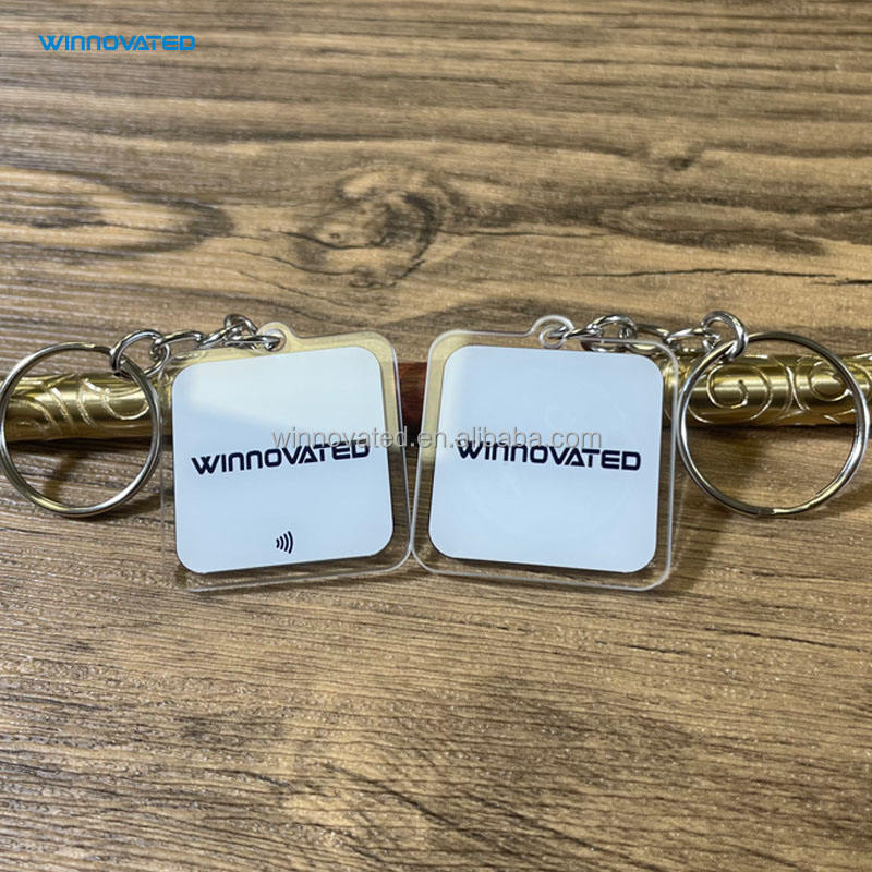 Porte-clés en acrylique RFID intelligent de forme personnalisée avec anneau métallique pour système de contrôle d'accès