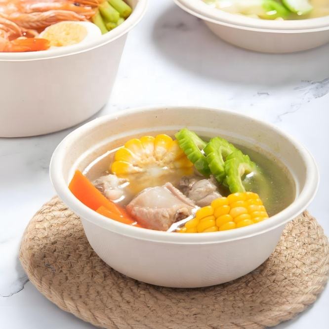 Emballage alimentaire jetable en bagasse de canne à sucre biodégradable de 32 oz, forme personnalisée, pour salade de fruits, avec couvercle pour Poke Bowl, ECO EARTH Travel