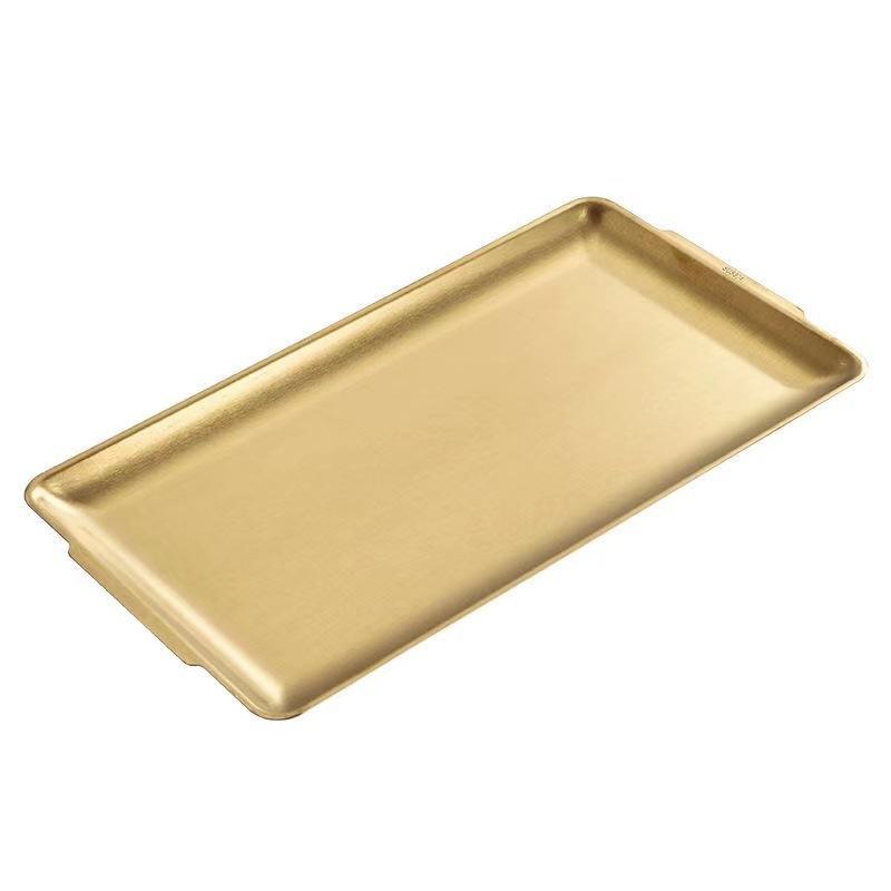 Plateaux de service de Buffet d'hôtel de forme personnalisée, assiettes en argent de qualité alimentaire, assiettes à rôtir 201 et 304, plateau en acier inoxydable doré de 32cm