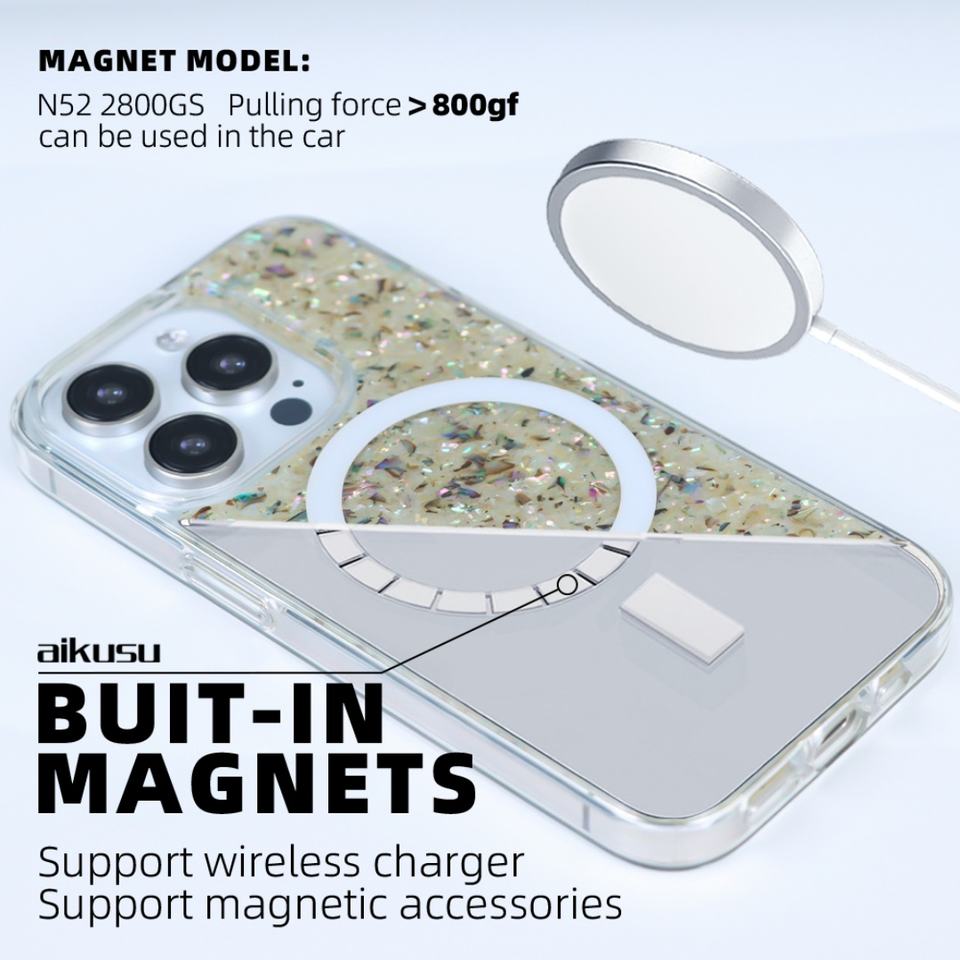 Étui de téléphone personnalisé en coquille de perle, coque transparente en TPU, côté PC, étui magnétique pour téléphone portable pour iPhone 16 15 14 13 12 Pro Max