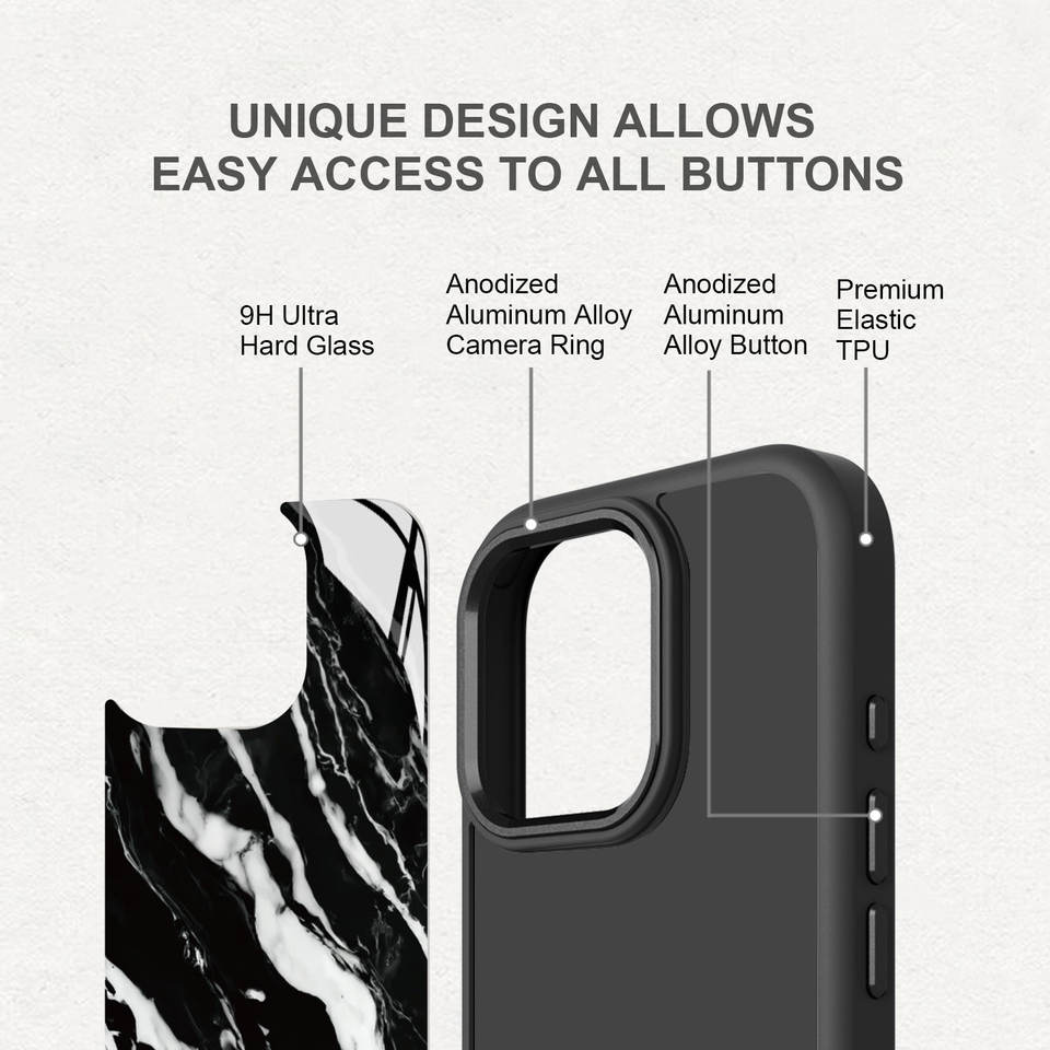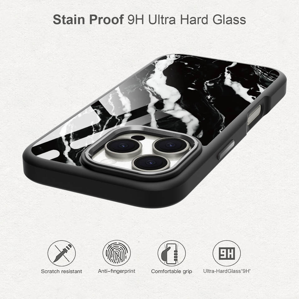 Tempered Glass Marble Phone Case For iPhone 16 Pro Max