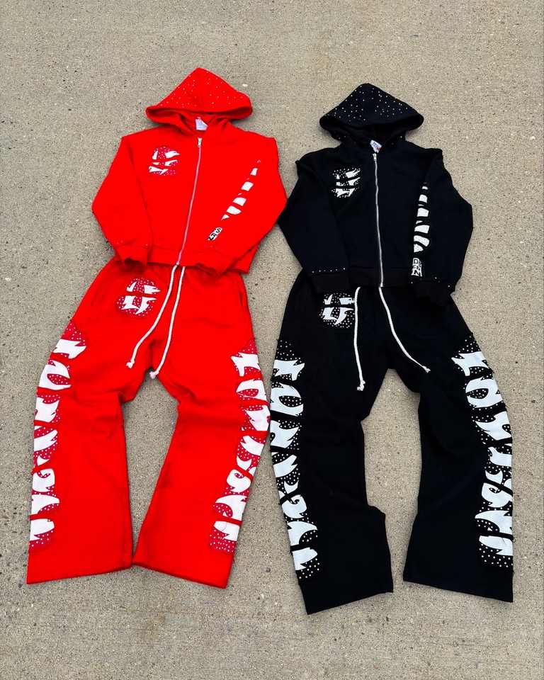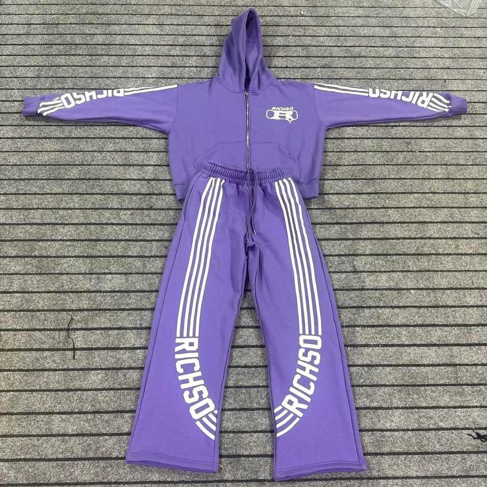 Ensemble survêtement personnalisé à rayures latérales, poids lourd, plusieurs couleurs, pantalon de survêtement empilé et sweat-shirt surdimensionné avec logo personnalisé