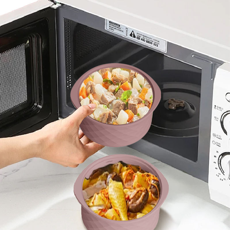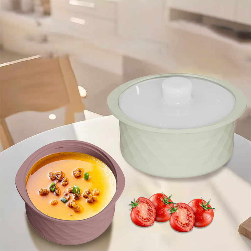 MOQ:100sets with Custom Silicone Food Steamer with Handle Lid