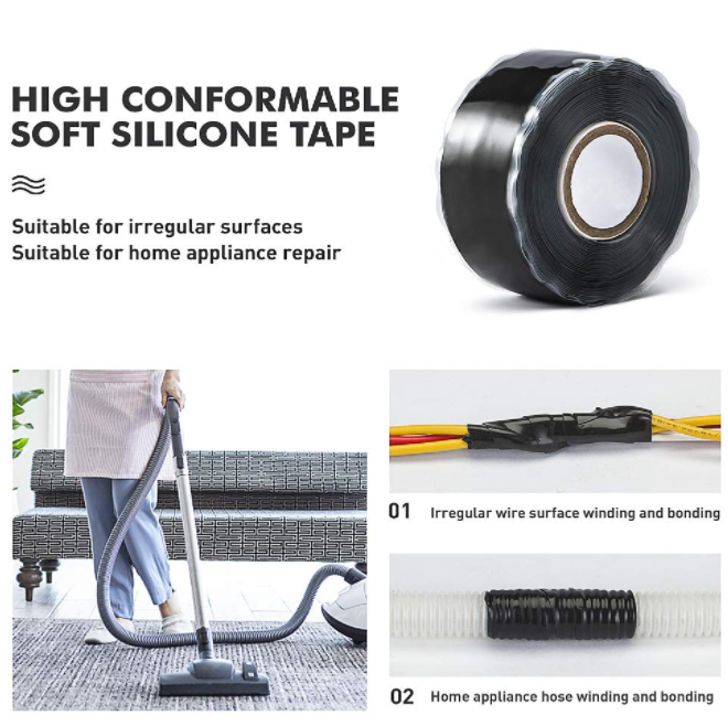 Ruban adhésif en silicone personnalisé pour réparation d'urgence de tuyaux, ruban de sauvetage auto-fusionnant en caoutchouc de silicone pour l'étanchéité anti-fuite