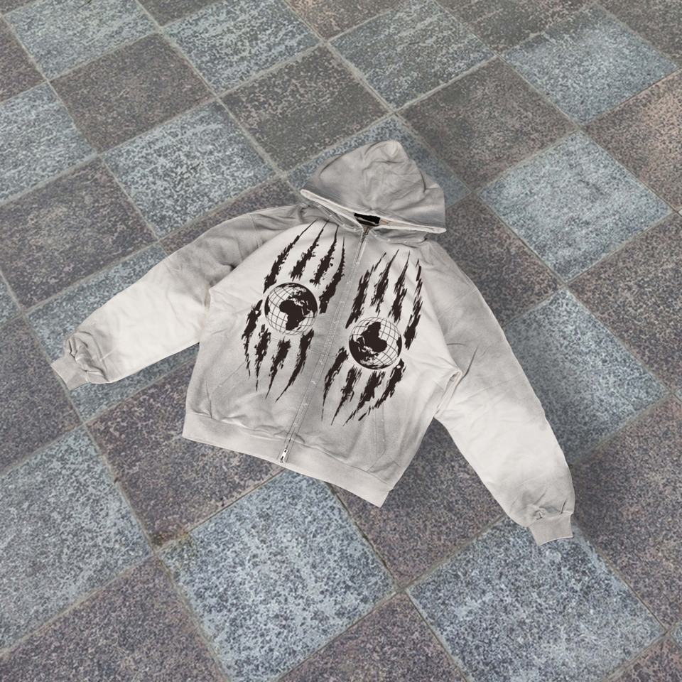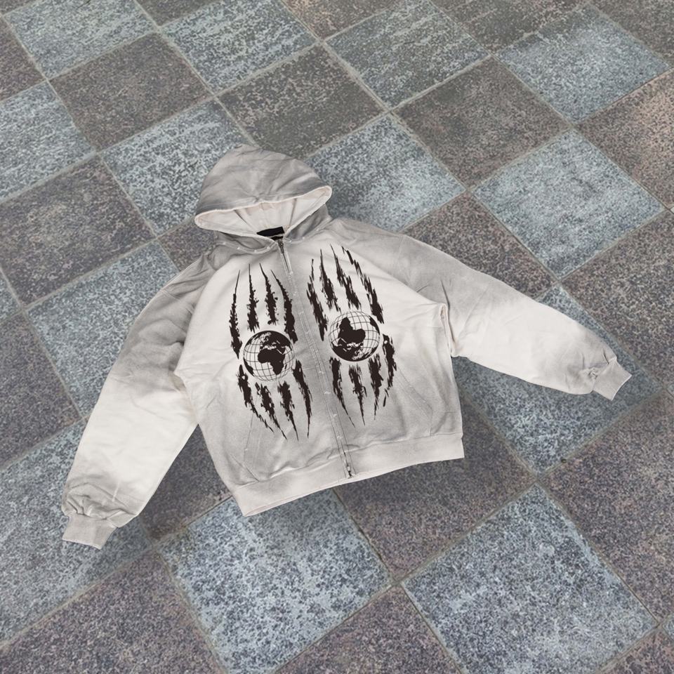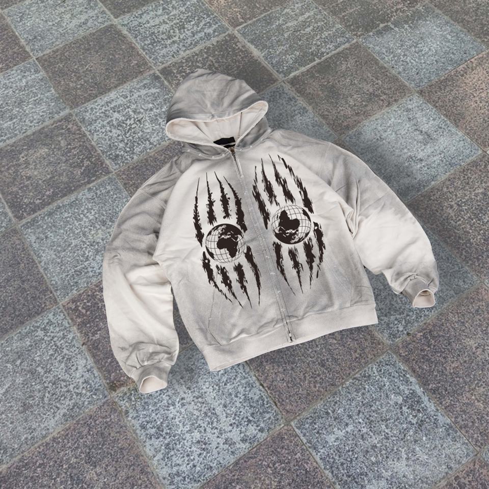 Sweat à capuche oversize en coton 100% avec logo imprimé en sérigraphie personnalisée, finition délavée à l'acide pour homme, automne