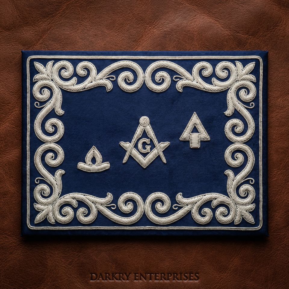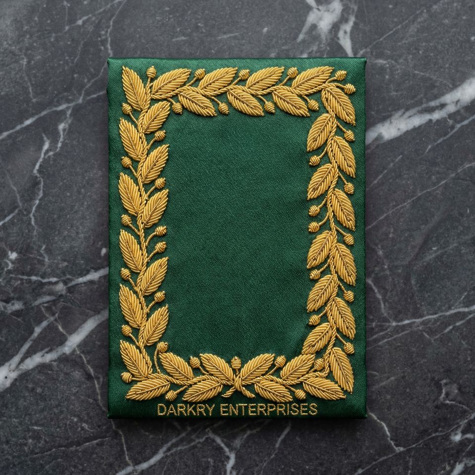 Badges brodés sur mesure en fil d'argent, faits à la main, avec pochette en velours violet pour insignes maçonniques, et patchs à bordure vierge pour la création de badges