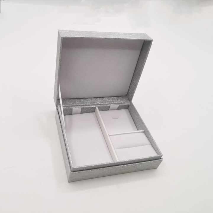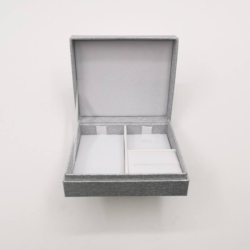 Boîte cadeau rigide personnalisée en argent pailleté avec insert multi-compartiments, emballage de luxe pour bijoux et montres, pour la vente au détail et les cadeaux