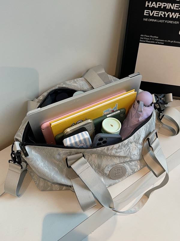 Sac de sport personnalisé simple et tendance en toile rigide écologique pour femme, sac de voyage de week-end grande capacité, sac de voyage à bandoulière