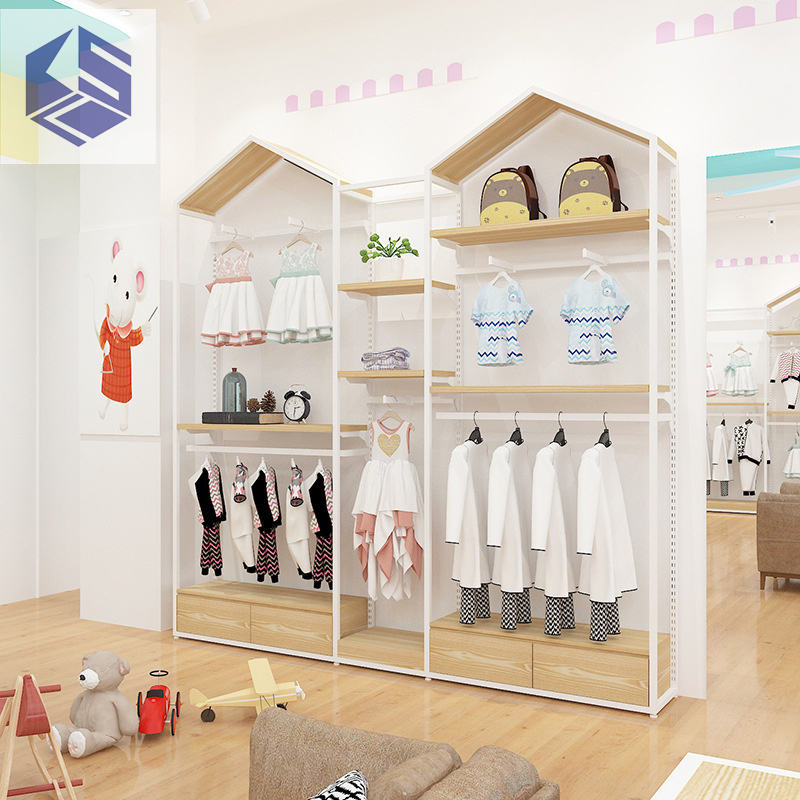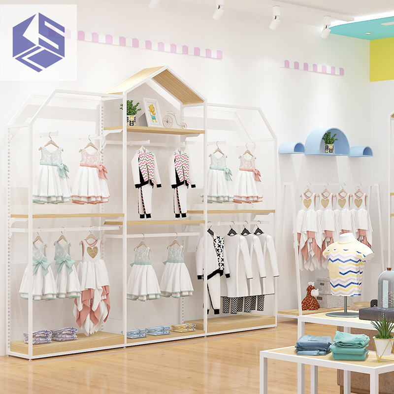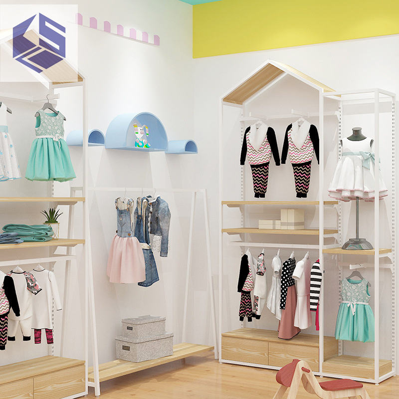 Porte-vêtements sur pied simple personnalisé pour enfants, modèle de maison, pour magasin de vêtements