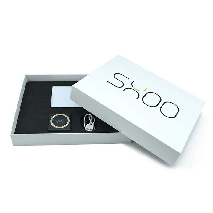 Personnalisé simple produits électroniques de luxe chargeur rapide câble couvercle et base emballage deux pièces boîte-cadeau rigide avec insert en mousse Eva