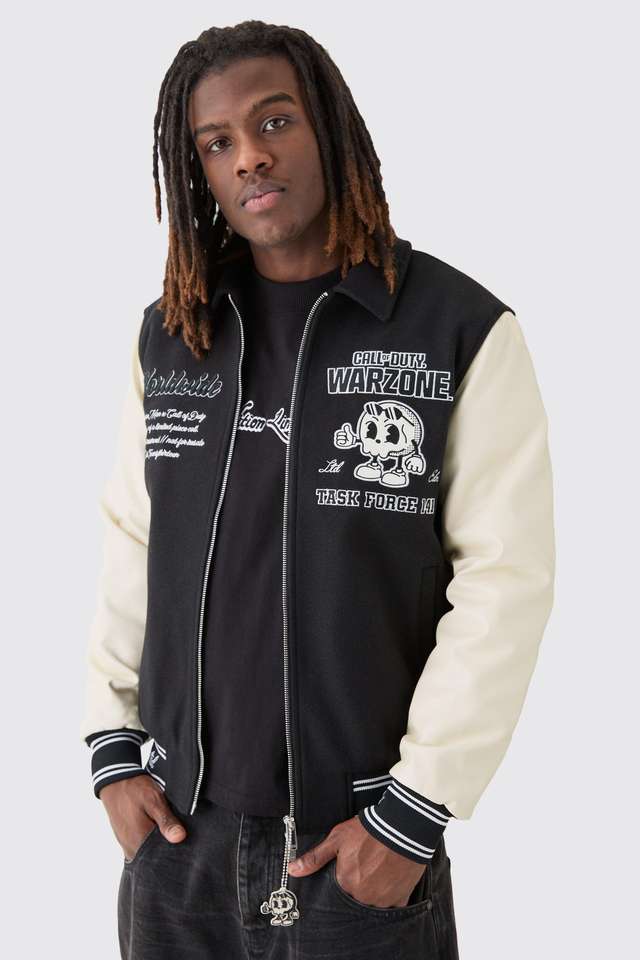 Veste universitaire décontractée en laine 100% coupe ample à ourlet côtelé à bouton unique personnalisée, blanche et noire, pour l'hiver, streetwear, coupe-vent, devant OEM