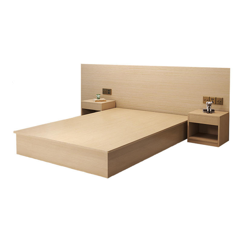 Lits d'hôtel simple et double à ossature en bois avec tables de chevet pour ensembles de chambre à coucher