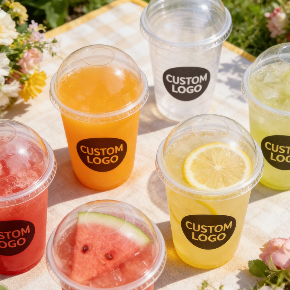 Gobelets en plastique givré en forme de U à paroi simple personnalisés 90 mm 1000 ml avec couvercle pour jus