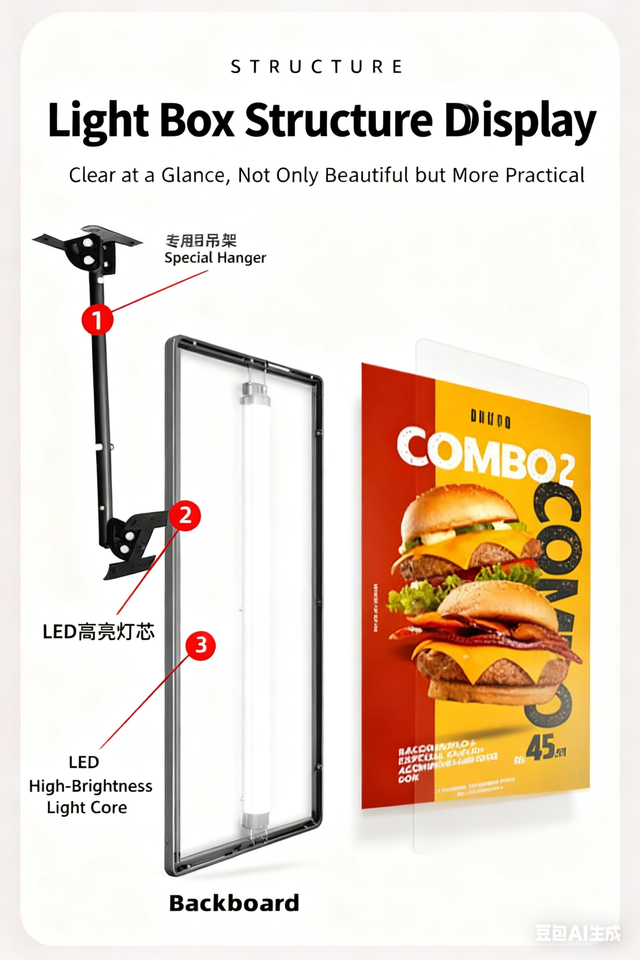 Boîte lumineuse magnétique publicitaire LED 12V rectangulaire de taille personnalisable et durable - Température de fonctionnement de -20°C à 50°C pour les cafés et les salles à manger