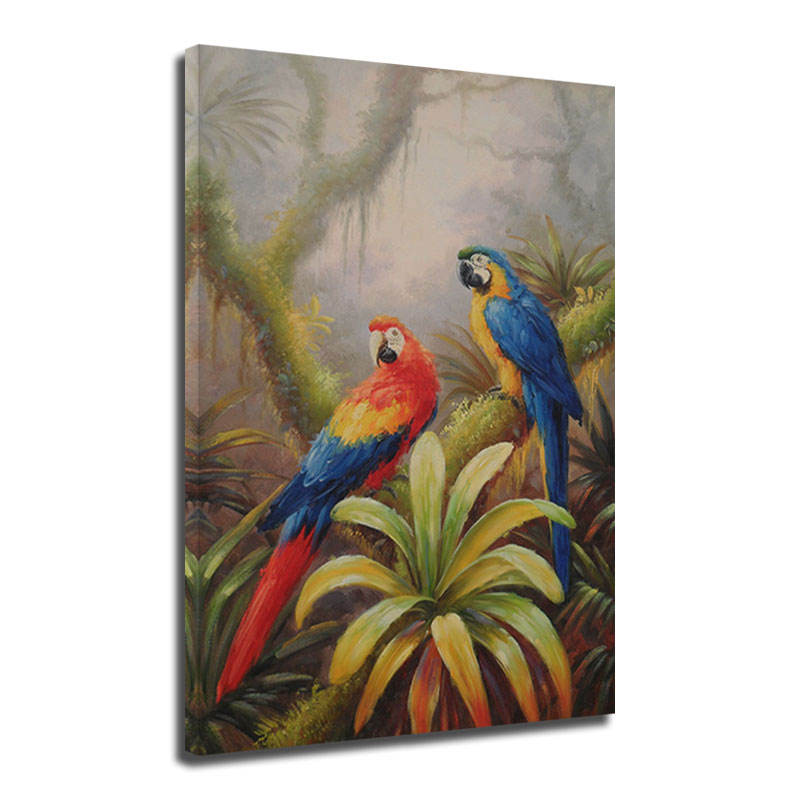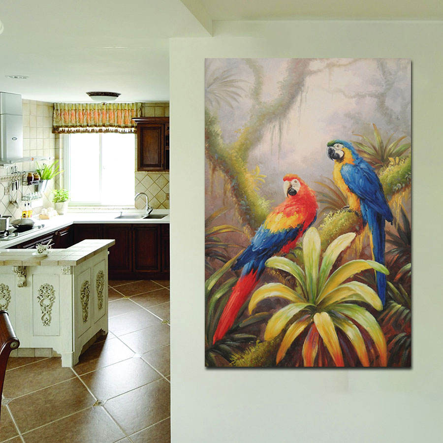 Peinture à l'huile originale d'oiseau perroquet, 100 % peinte à la main, sur toile, taille personnalisée, pour décoration intérieure
