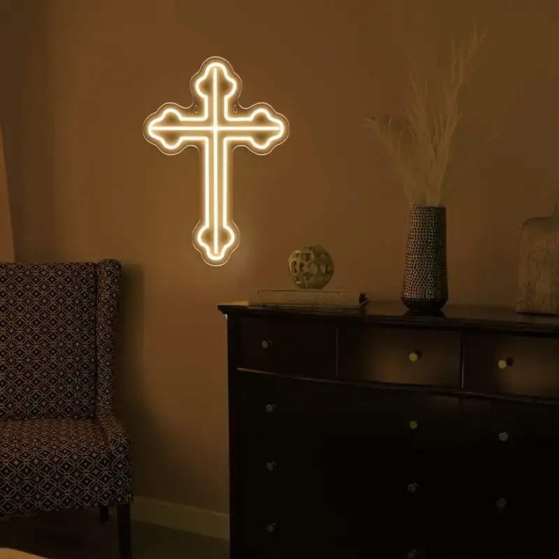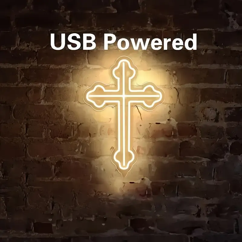 Enseigne néon LED en forme de croix, personnalisable, 5V, à intensité variable, motif Jésus, flexible, pour extérieur, chambre, salon, mariage, église, IP65, décorations en plastique