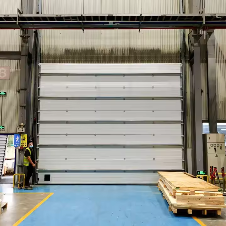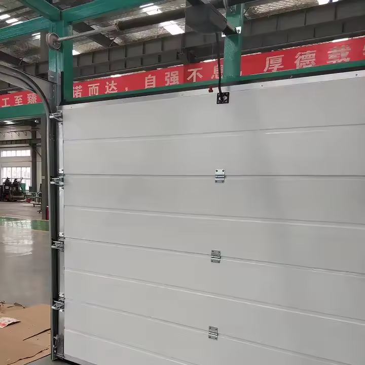Porte sectionnelle en acier isolée à enroulement automatique au design moderne de taille personnalisée 8x9 pour garages villas surface finie étanche
