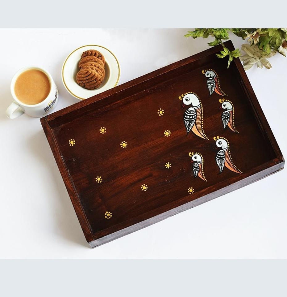 Plateau de service en bois émaillé imprimé fait main, sur mesure, pour le stockage des fruits, vaisselle, plateau à thé et café, prix abordable