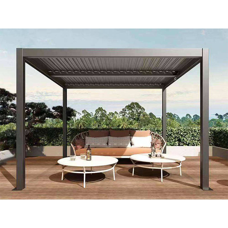 Pergola à toit à lames orientables en aluminium, taille personnalisable, étanche, éclairage RGB dimmable, écologique, pour terrasse arrière-cour
