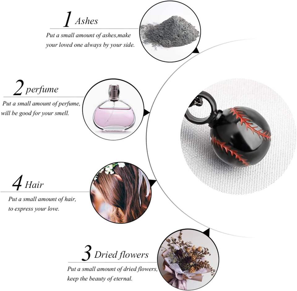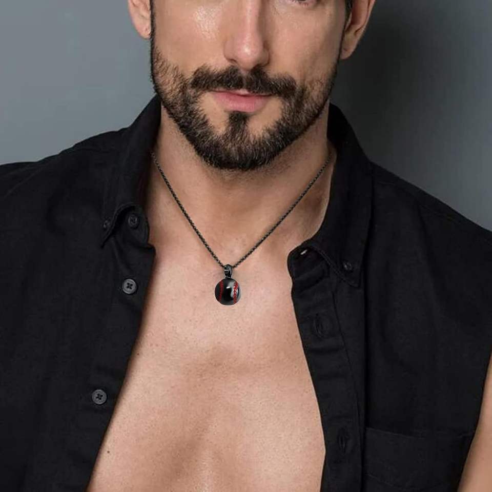 Collier pendentif urne commémorative en acier inoxydable noir de taille personnalisée Bijoux de crémation pour cendres Thème de baseball Métal durable