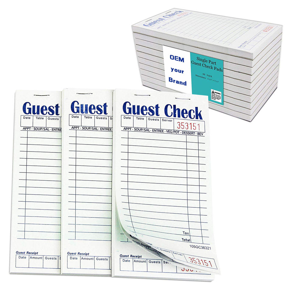 Carnet de reçus en papier NCR sans carbone sur mesure, impression de factures, papier autocollant, carton, logo personnalisé, faible MOQ