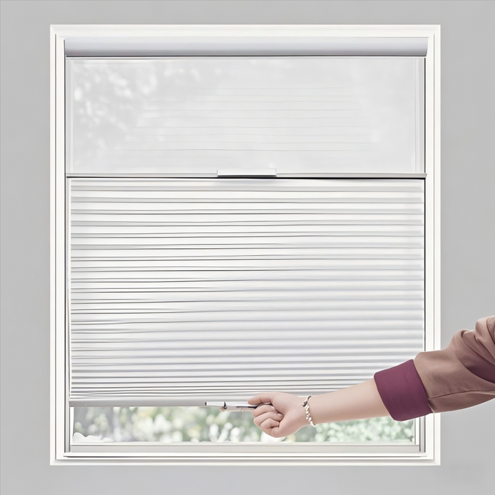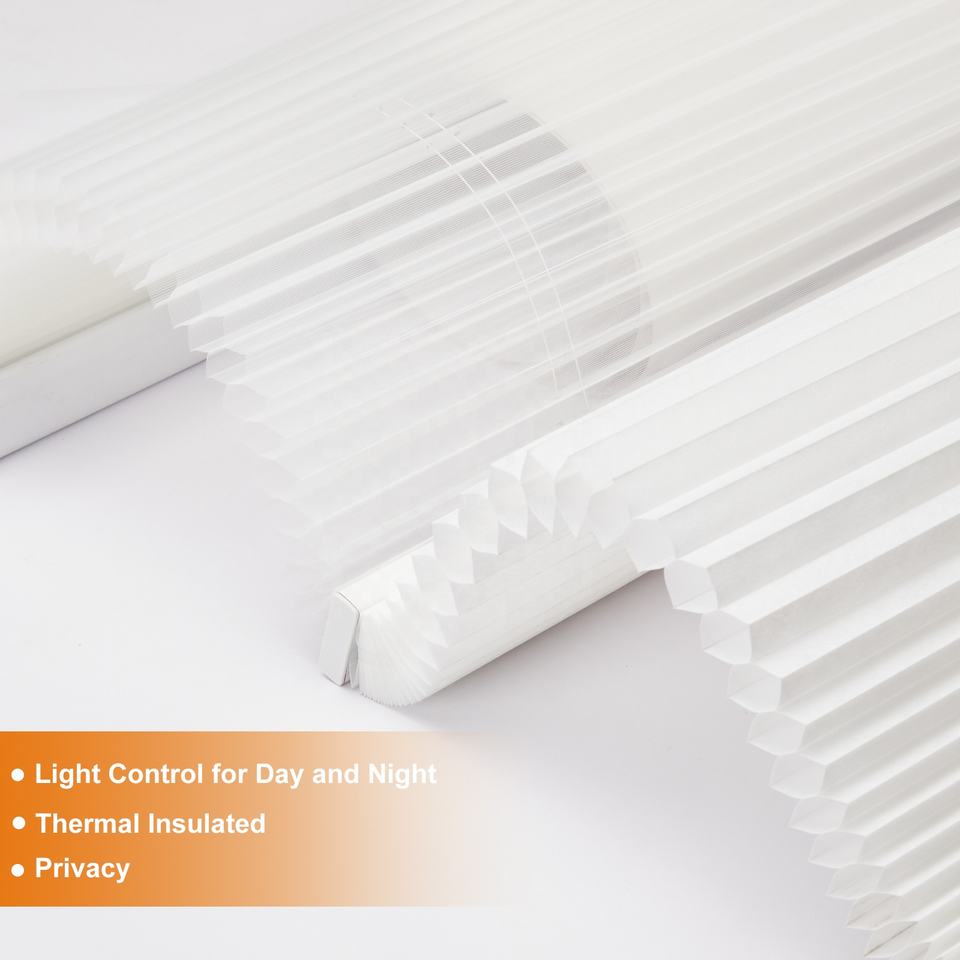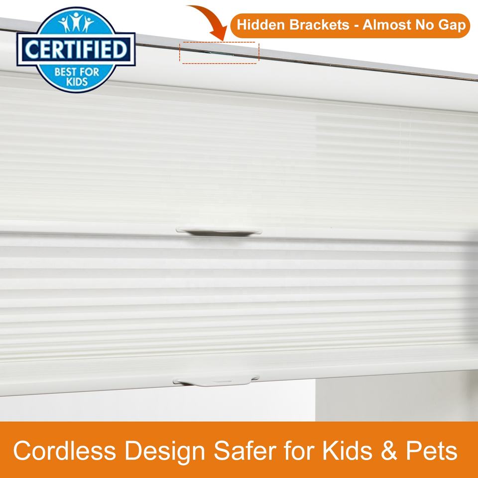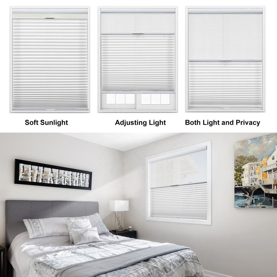 Stores alvéolaires sur mesure, sans cordon, à ouverture par le haut ou par le bas, filtrant la lumière, stores plissés pour fenêtres