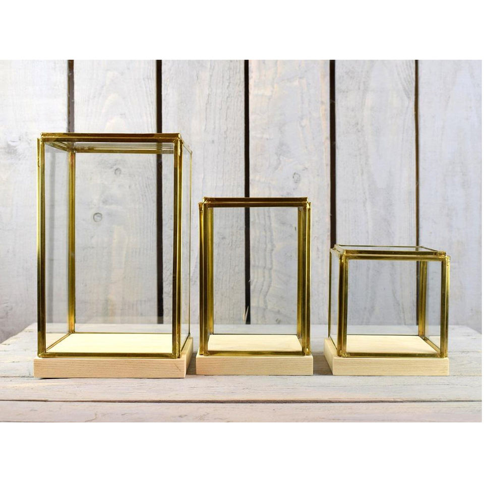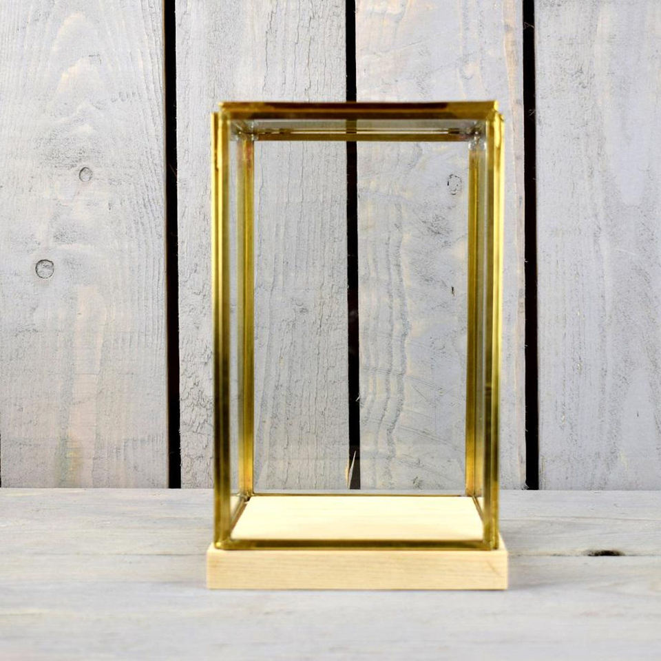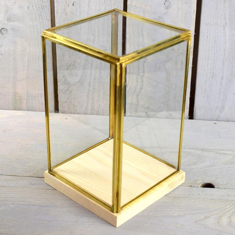 Boîte de rangement en verre transparent doré de taille personnalisée avec socle en bois Accessoires de décoration Boîte en verre souvenir Décoration polyvalente
