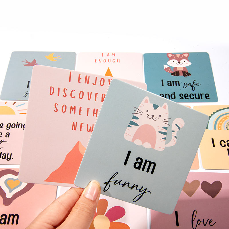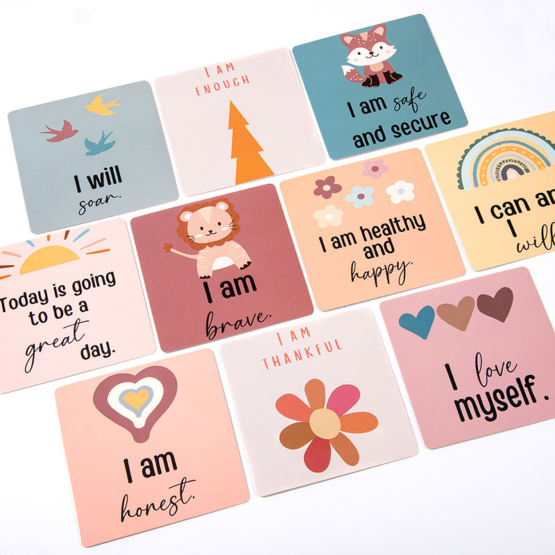 Cartes de motivation pour enfants sur mesure, en carton offset, avec logo personnalisé, phrases positives, affirmations de relaxation
