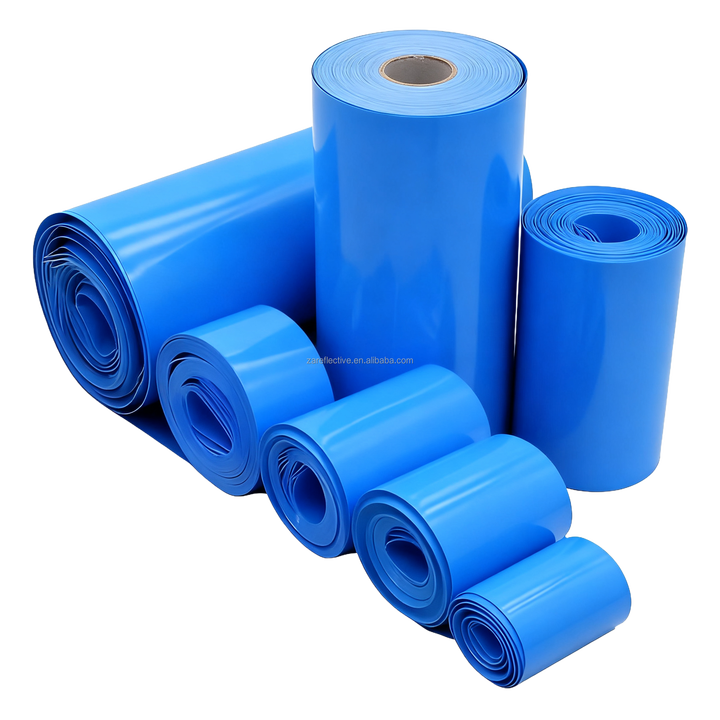 Manchon thermorétractable en PVC flexible de taille personnalisée, résistance à la basse tension et aux hautes températures, isolation bleue, certifié ROHS pour 18650