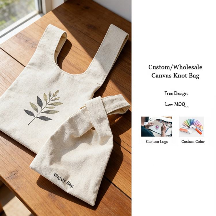 Sac à main carré en toile de coton doux, style japonais et coréen, avec nœud, imprimé intégral, taille personnalisée, sac de shopping décontracté