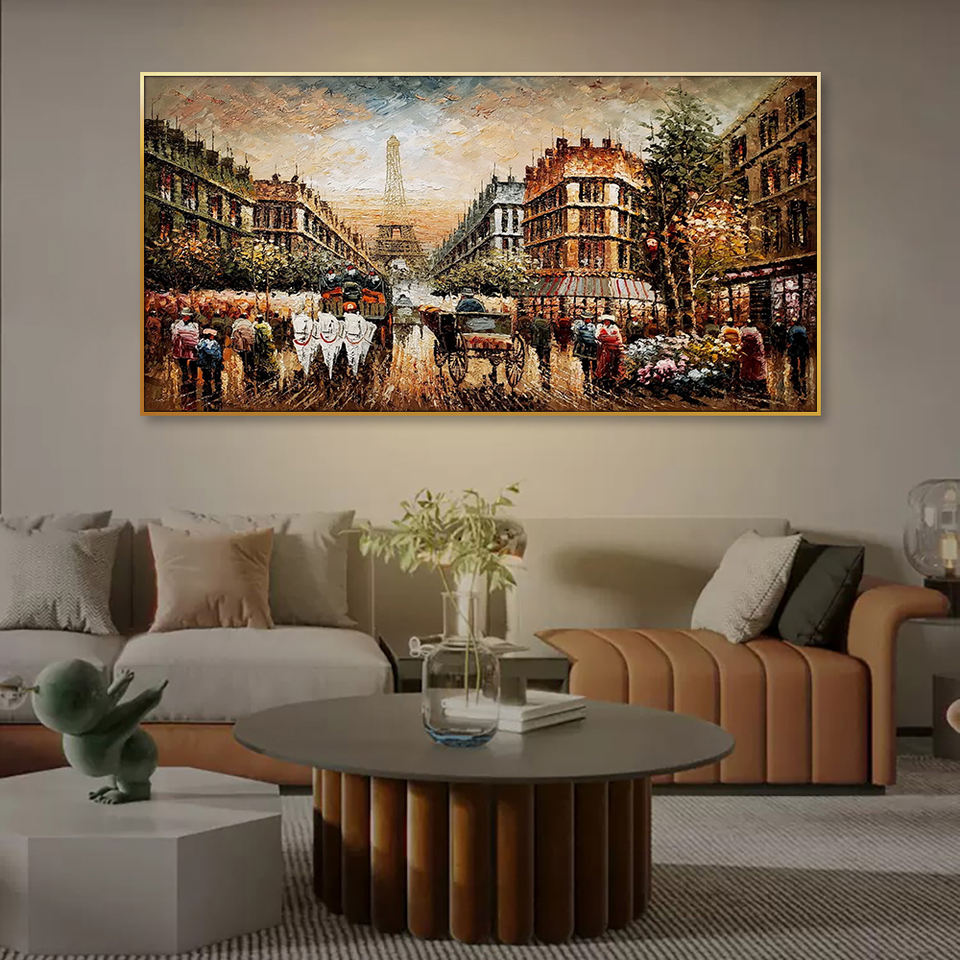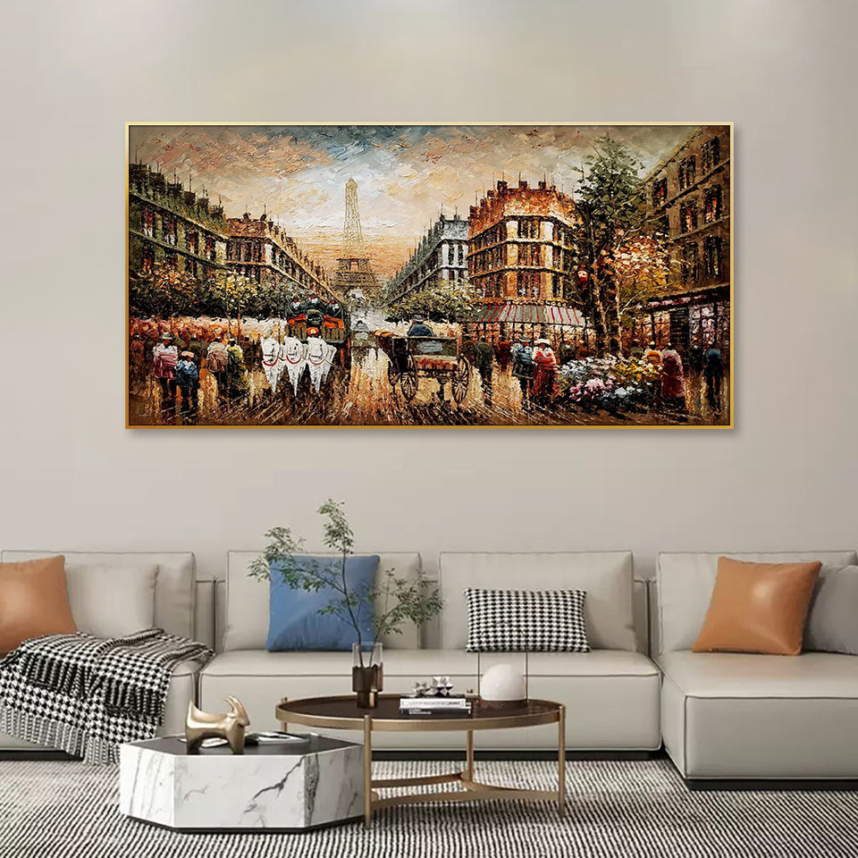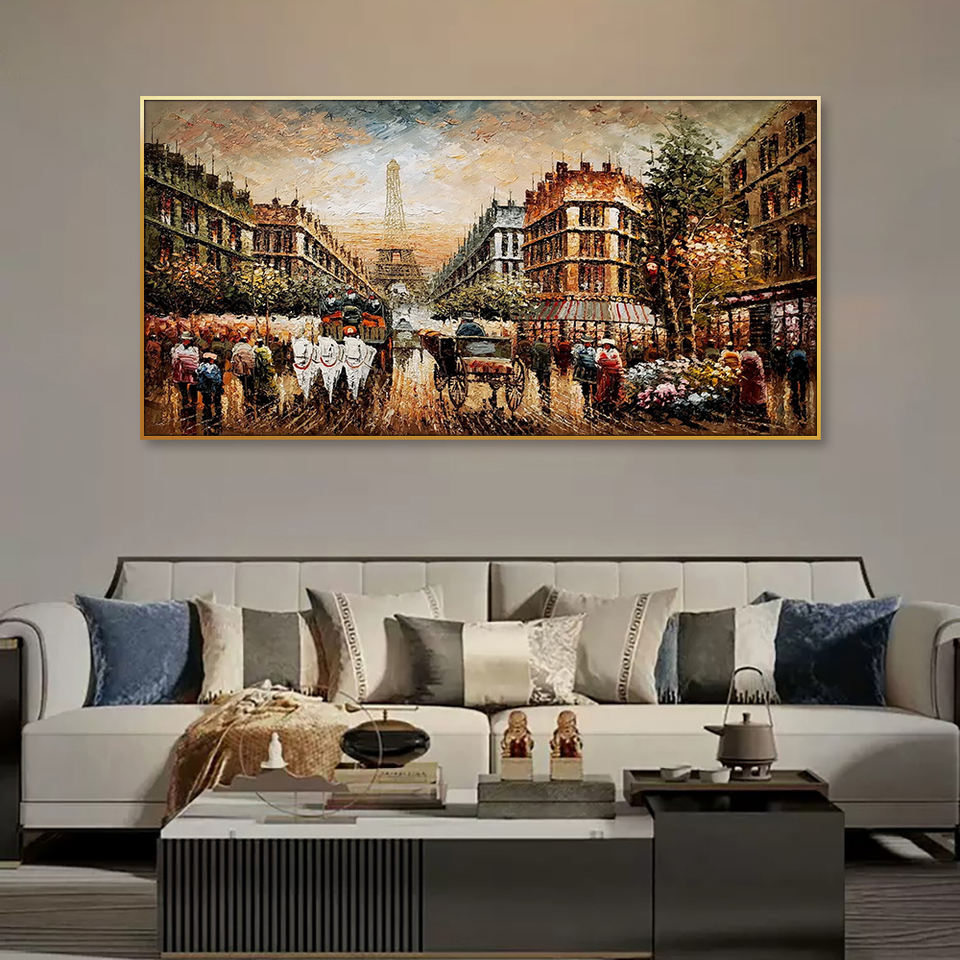 Peinture à l'huile de rue de Paris faite à la main de taille personnalisée Style abstrait classique avec des sujets de paysage et d'arbres pour la décoration intérieure
