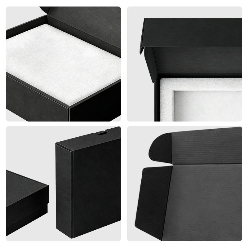 Boîtes d'emballage personnalisées en carton ondulé rigide, impression sur papier noir, pour envoi postal, livraison, emballage avec logo