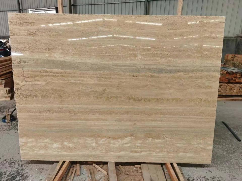Dalle de pierre de travertin gris italien sur mesure, vente en gros, dalle moderne polie de grande taille pour utilisation hôtelière