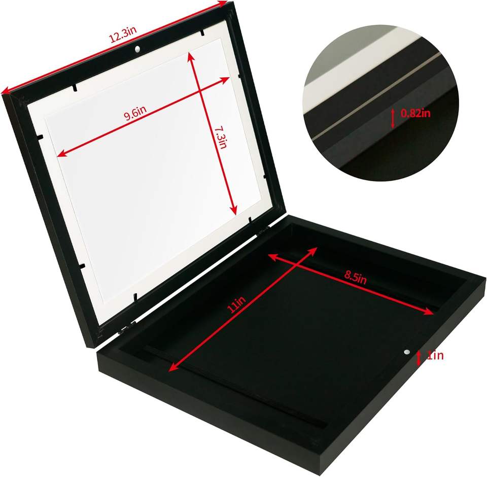 Cadre d'art pour enfants sur mesure avec passe-partout, pour affichage et rangement d'œuvres d'art interchangeables, noir et blanc, pour mur ou table