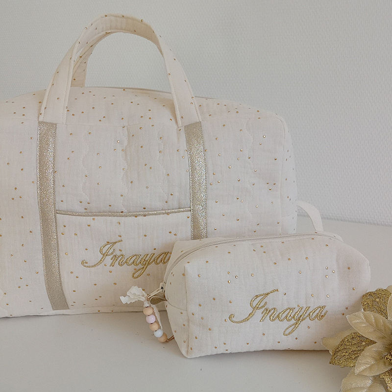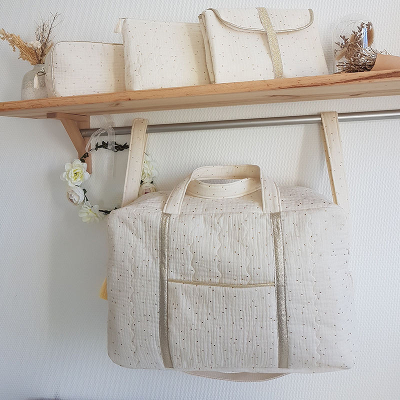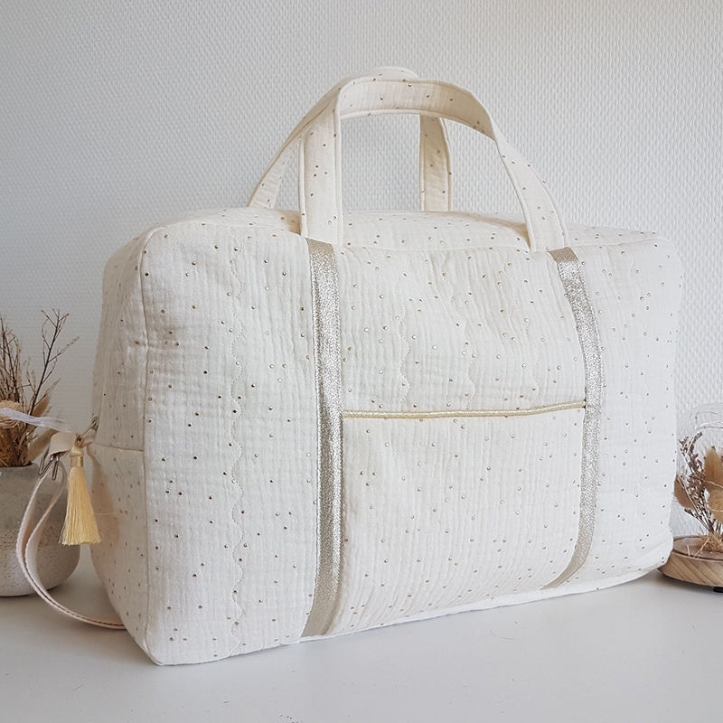 Gaze de Coton Matelassée Écru Double Rembourrée avec Logo Personnalisé, Sac de Voyage pour Bébé à Langer pour Maman Weekender, Fourre-Tout