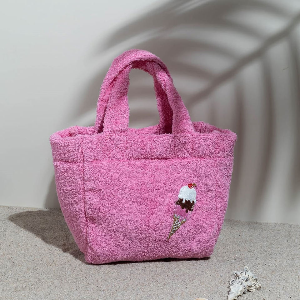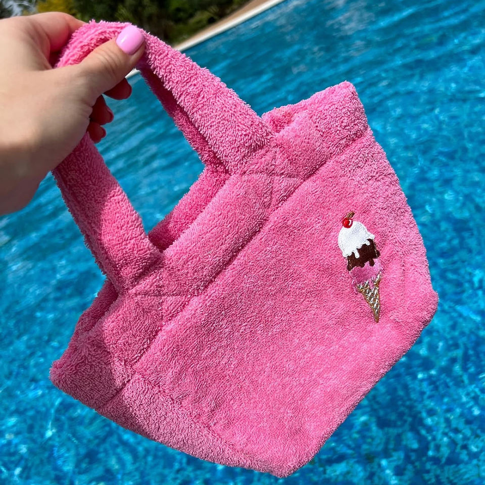 Serviette éponge avec logo de taille personnalisée pour femmes petit sac fourre-tout spacieux en tissu éponge pour femmes avec motif de broderie