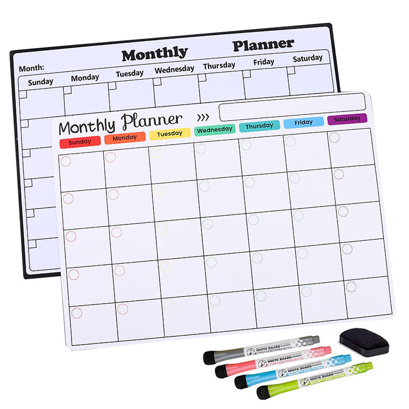 Ensemble de tableau blanc magnétique souple de taille personnalisée, effaçable à sec, aimant pour réfrigérateur, tableau blanc mensuel et hebdomadaire, mémo