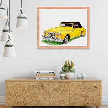 Custom Size Modern Style Hand-Drawn Realistic Yellow Classic Cars Portrait Unique Oil Painting on Canvas Gift