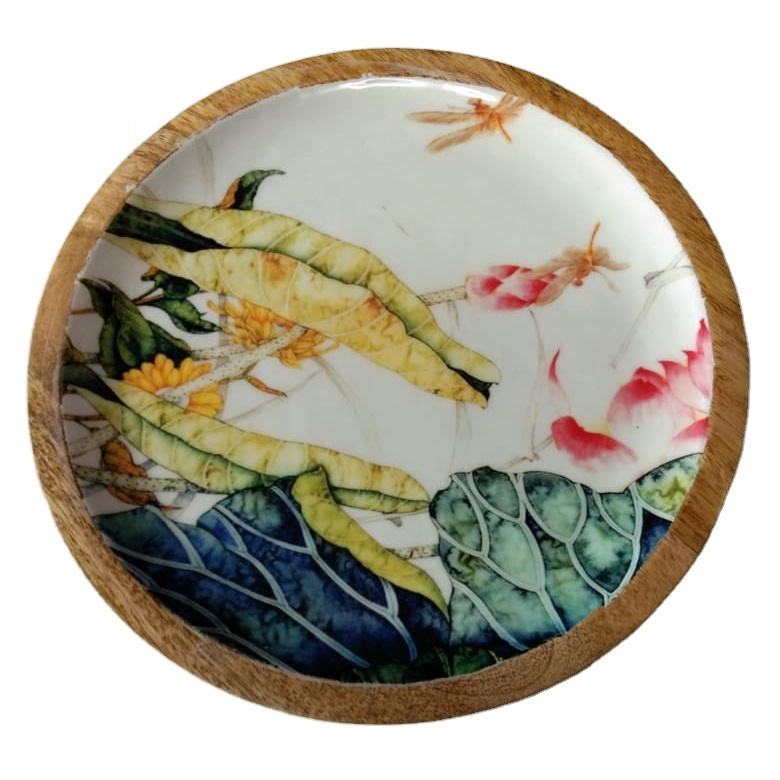 Plateau de service rectangulaire en bois émaillé imprimé de taille personnalisée Plateau décoratif moderne pour thé et fruits pour la cuisine et la maison