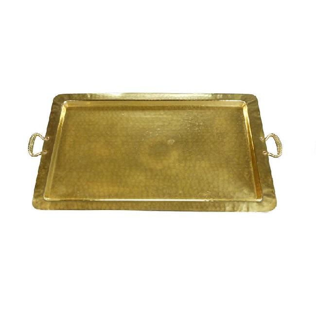 Plateau de service rectangulaire de taille personnalisée Conception de marteau en laiton plaqué cuivre pour la maison Hôtels Petit déjeuner Café Alimentaire Service décoratif