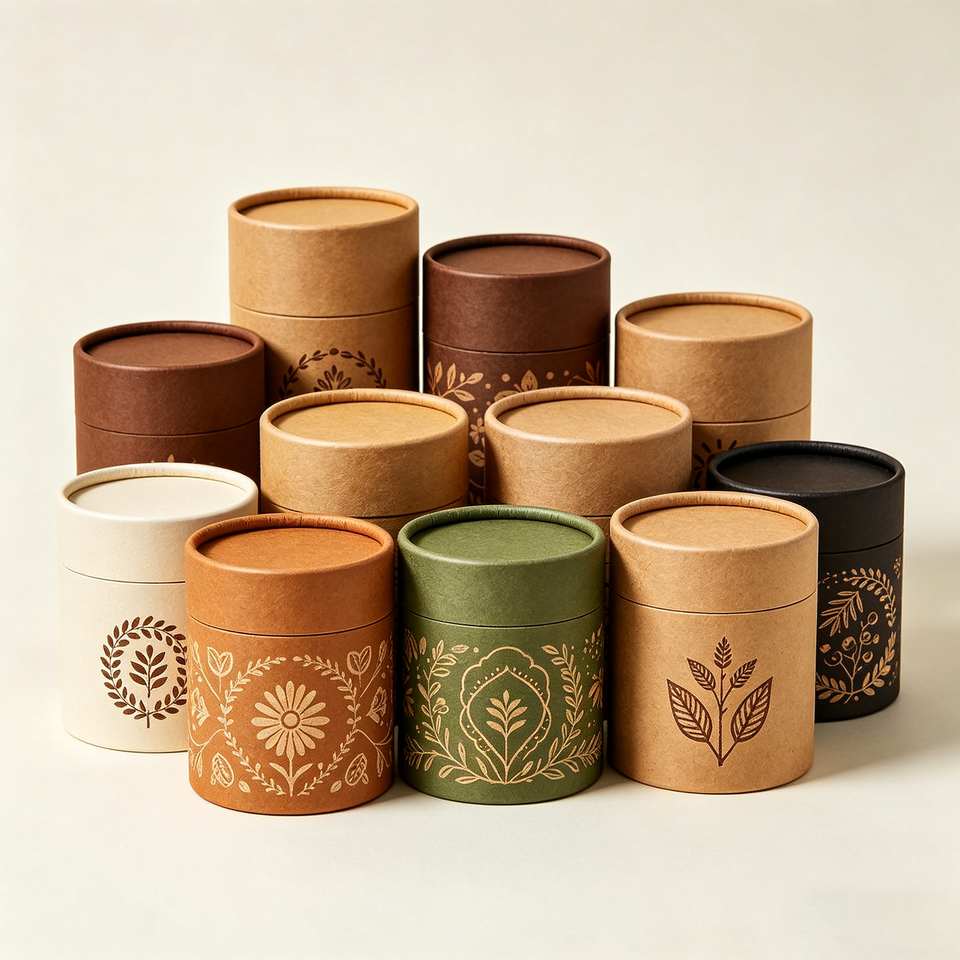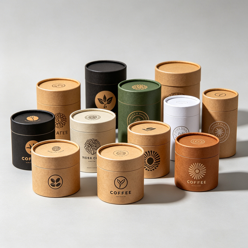 Boîte cylindrique en carton kraft recyclable sur mesure pour poudre de cacao, épices, café instantané, emballage en tube de papier pour thé en vrac et café