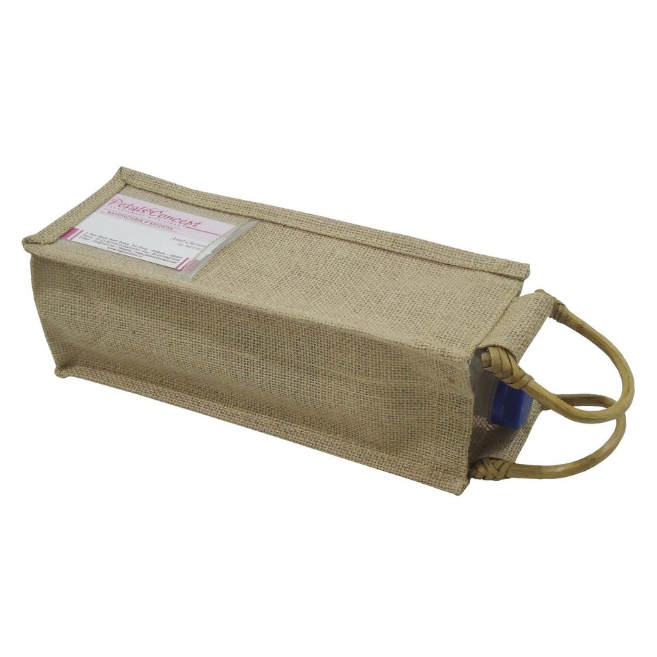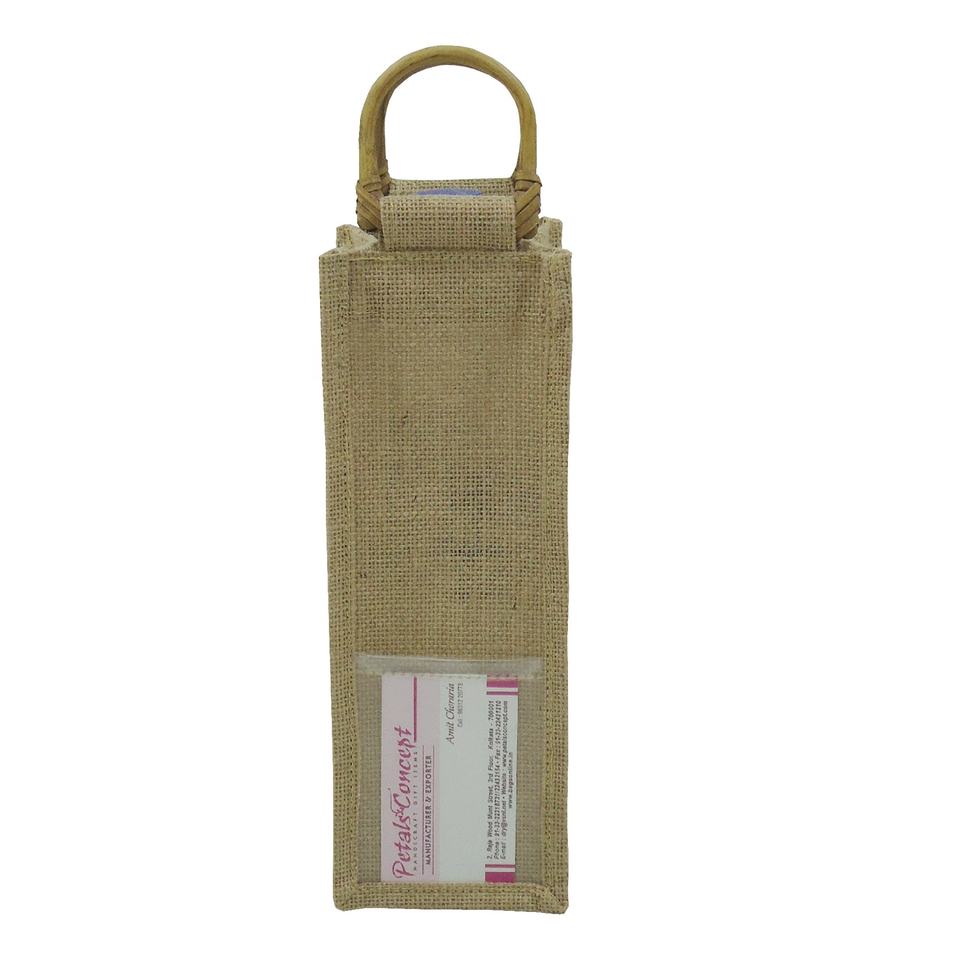 Sac cadeau réutilisable en toile de jute sur mesure pour vin et bière avec poche transparente, en jute naturel, pour une bouteille, promotionnel