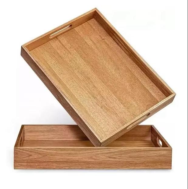 Plateau de service en bois de bambou sur mesure, petit, grand, extra grand, pour aliments, café, sandwichs, en-cas