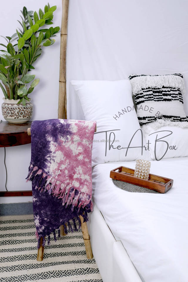 Taille personnalisée doux tissé à la main cravate-teint canapé jeter décor à la maison bloc à la main imprimé plage couverture Style bohème polaire lit jeter