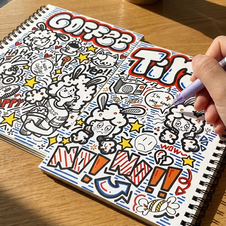 Carnet à spirale sur mesure ligné style graffiti américain rétro pour filles, prise de notes, logo et couleur personnalisés pour étudiants, OEM/ODM