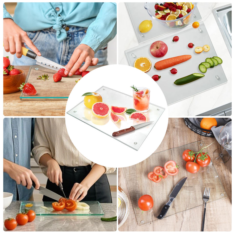 Planche à découper en verre trempé sur mesure, robuste, résistante aux rayures, lavable au lave-vaisselle, hygiénique, accessoires de comptoir de cuisine