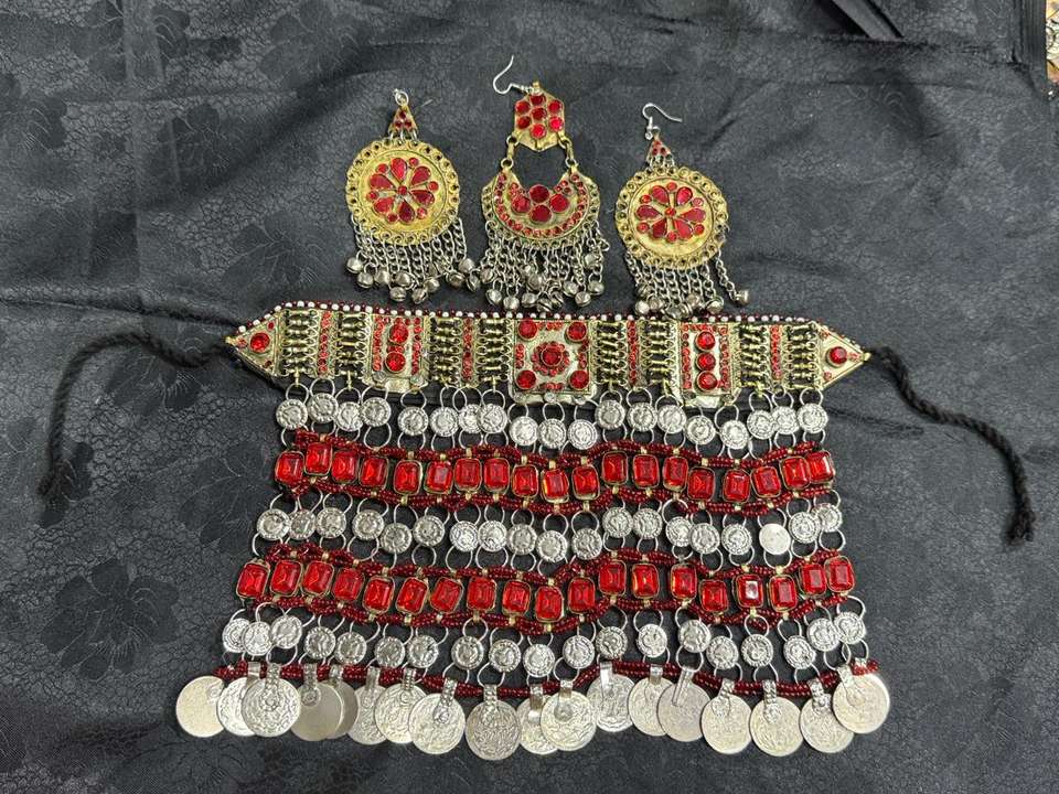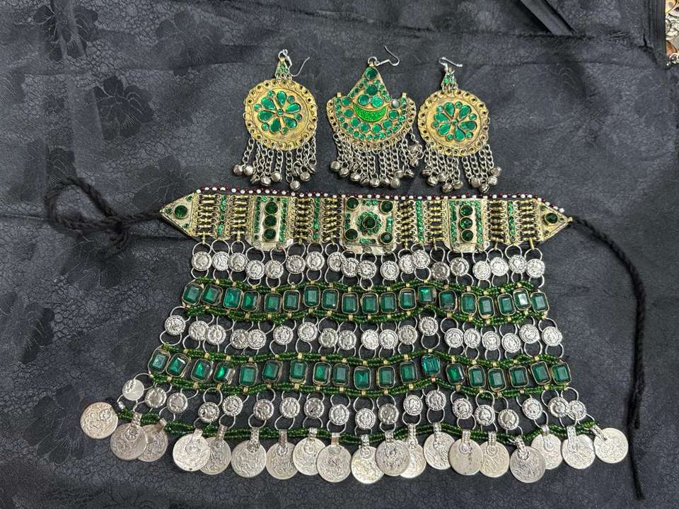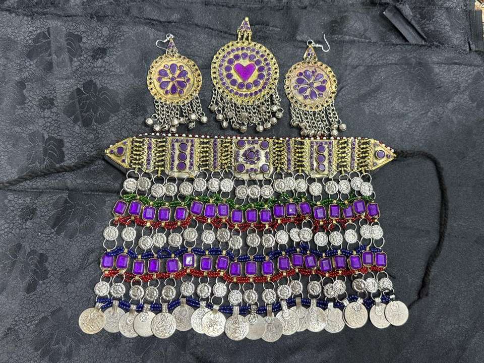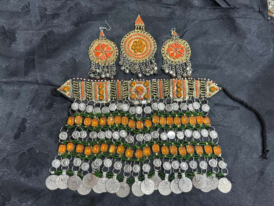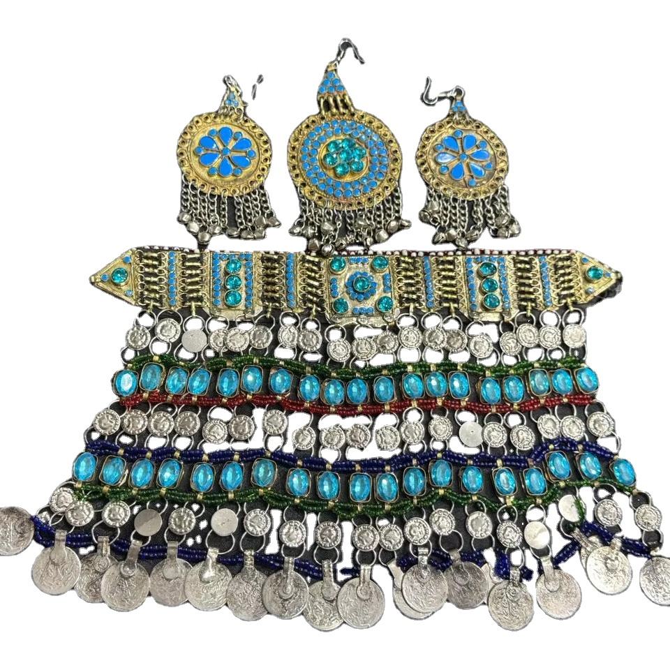 Ensemble de collier et de boucles d'oreilles afghanes Kuchi turquoise sur mesure, haute qualité, multicolores, bijoux de mariage, plaqué or antique pour les fêtes
